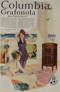 - I am slightly stunned by the above image, and not just because I bear a strong resemblance to the woman at the center. The 1920’s is a vast source of inspiration for me: from art to literature, film to fashion, politics to pop-culture I find it full of energy, complexity, and beauty. There is a freshness and vigor to the tableaux in the advertisement, as well as a sense of unreality, however understated (which is, perhaps, typical of most advertising). Playing a gramophone sea-side seems much more sophisticated than bopping along to an Ipod. Ah, well: life was not meant to be static.