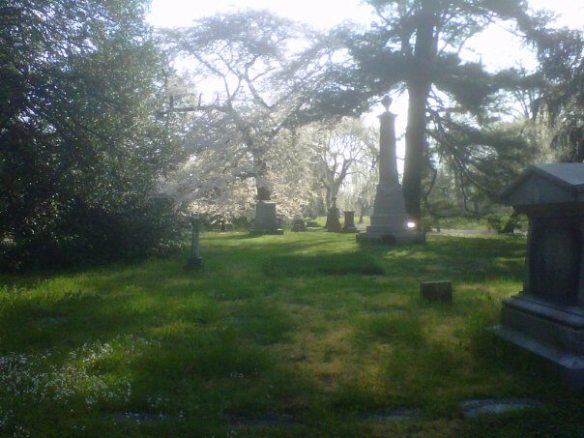walking amongst graves. My husband and I are lucky to live a few minutes from the second largest cemetery in the United States. Established in 1845, it is equally an arboretum, with 15 lakes, trees, flowers and wildlife set within what, at times, looks like traditional parkland.