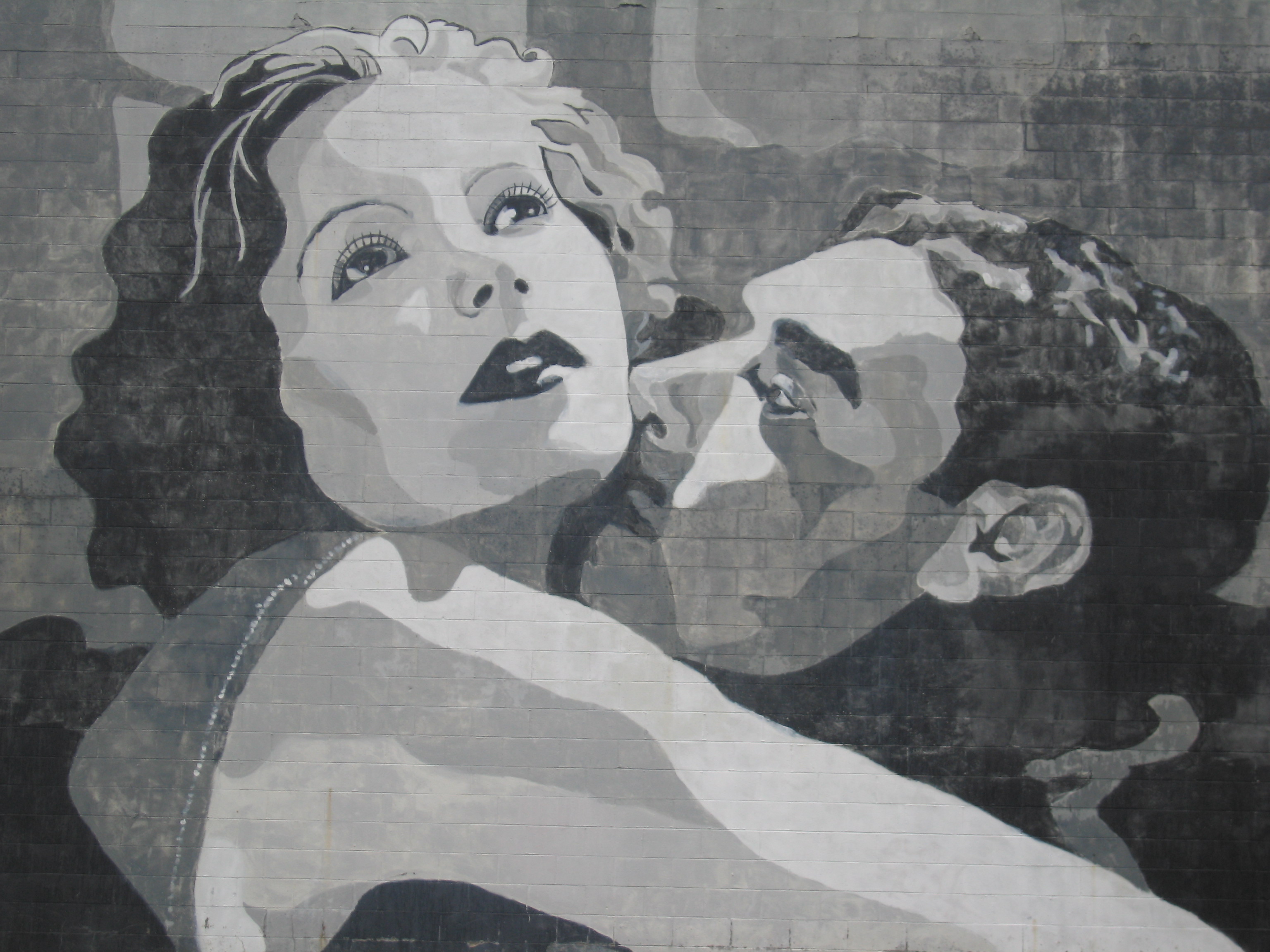 This fantastic mural is much more than the sum of its (pretty amazing) parts. True, it memorializes an important, mostly lost art and entertainment form. It shows us the attractiveness and mystery-that ineffable ‘it’ factor-held by two of the leading players in the history of film. It’s a beautifully rendered work of art in its own right, the kind that stops you in your tracks even if you are not familiar with the subjects. That is the point. It is beautiful, yes, but it also brings up questions. You will remember it long after you walk by, or click on this slideshow. What works of art not only decorate but demand discussion in your city?