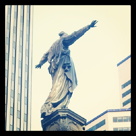 Detail #3. In warm months, water flows from her hands. Published February 24, 2013 at 530 × 530 in Daily Diversion #101: The Genius of Water Runs Dry in Winter Detail #3. In warm months, water flows from her hands. Detail #3. In warm months, water flows from her hands.
